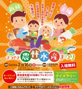 また、地元産の農林水産物などを販売する『第17回まつやま農林水産まつり』や地元の学生による活動『マツワカドリームセッション』のイベントも同時開催いたします。